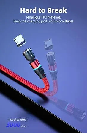 540° ROTATABLE HIGH QUALITY 3 IN 1 FAST MAGNETIC CHARGING CABLE WITH 3 PINS